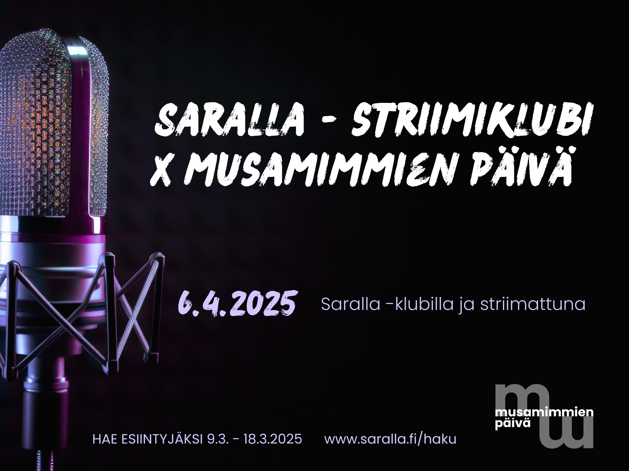 Musamimmien päivä 9 maaliskuun, 202515 helmikuun, 2025 kirjoittaja admin Livemusiikkia Saralla – striimiklubi sunnuntaina 6.4.2025